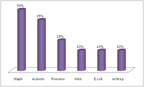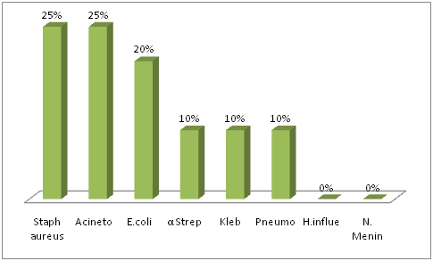 In our study the culture positivity rate was 22% (1320/6000). Various studies report culture negative cases of meningitis or a low CSF culture positivity, ranging from 6 to 50%.25,27,28 Various reasons cited in the literature for a low yield of bacteria on culture are prior antibiotic therapy, delay in transport of specimens to the laboratory, non availability of special media for specific pathogens, presence of autolysis enzymes in CSF and lack of a 24 hour facility for processing CSF samples. Staphylococcus aureus was the most common pathogen in adult population (1056) which was isolated in 316 (30%) culture positive cases, followed by Acinetobacter baumanii which was isolated in 264(25%) of patients further followed by Pneumococcus pneumoniae (15%), Klebseilla pneumoniae (10%), E. Coli (10%) and α Streptococci (10%). There was no isolation of Haemophilus influenzae and Neissaria meningitides. For paediatric population Staphylococcus aureus and Acinetobacter baumannii is the most common isolated pathogen 66(25%) followed by E.coli (20%), Pneumococcus pneumoniae (10%), Klebsiella pneumoniae (10%) and α Streptococci (10%). There was no isolation of Haemophilus influenzae and Neissaria meningitides. The MRSA is 287(75%) of total isolated staphylococcus aureus (382) species while 95(25%) were MSSA. In our study we observed that S. aureus and Acinetobacter bowmanii has been emerged as the most common pathogen causing ABM in all age groups followed by other gram positive and gram negative bacilli. A study in Taiwan showed an increase in the incidence of staphylococcal infection which rose from 15% to 23% and a decrease in the incidence of Streptococcus pneumoniae which fell from 10.6% to 3.6%. Staphylococcal strains replaced S. pneumoniae, becoming the most common Gram positive pathogen of acute ABM in their hospital.29,30 In our study Acinetobacter bowmanii emerged as an emerging pathogen in both age group (Adult:Paediatric/30%:25%). Multidrug-resistant Acinetobacter baumannii is a rapidly emerging pathogen in the health care setting, where it causes infections that include bacteraemia, pneumonia, meningitis, urinary tract infection, and wound infection. The organism’s ability to survive under a wide range of environmental conditions and to persist for extended periods of time on surfaces make it a frequent cause of outbreaks of infection and an endemic, health care-associated pathogen.31,32 In many studies Acinetobacter baumannii has been reported as a cause of meningitis as hospital acquired infection or acquired after neurosurgical procedures.33-38