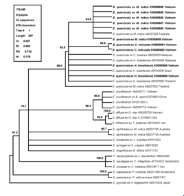 Once again; the result of 28S rDNA phylogenetic study indicated that the powdery mildew mango in Vietnam belong to E. quercicola clade with bootstrap value support 58.1% and 69% in MP and ML analysis; respectively.