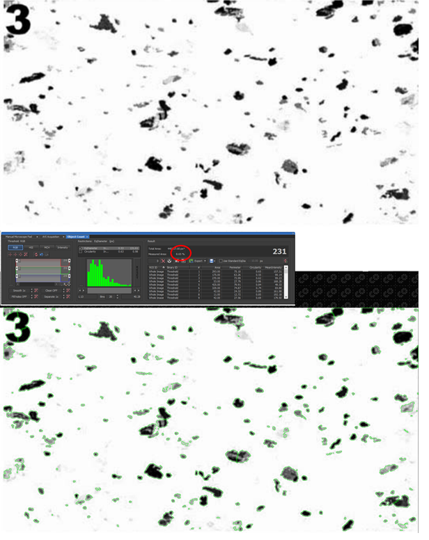 Figure 1 Percentage coverage of image 3 from Figure 1 in ASTM D7391 [33] by image analysis software. Analysis was performed using NIS elements software ‘objects count’ function.