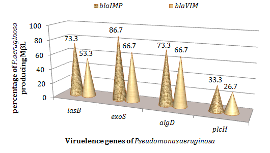 Figure 6 Percentage of metallo-β lactamase according to virulence genes of Pseudomonas aeruginosa. MβL Imipenemase (IMP), Verona imipenemase (VIM).