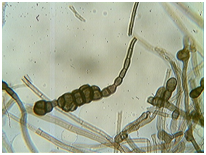 Colony olivaceous, brown, conidiophores macronematous, septate, sporogenous cell bears on top of conidiophores, 40- 156μm long and 4-7μm wide. Conidiophores simple, sptate, hyaline. Conidia small, simple, catenulate, only one longitudinal septa over single transverse septa, 6-11μm×4-9μm.