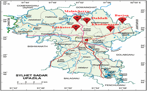 The tea garden areas of Sylhet district located 315km north east from capital city Dhaka were selected for this study as it is the poorest area of Bangladesh. Sylhet is located at 24.8917°N and 91.8833°E. It has 86074 units of house hold and total area 323.17 km².12 More than 75% rainfall occurs in the monsoon period. Average temperature of the country ranges from 17 to 20.60°C during winter and 26.90 to 31.10°C during summer. Average relative humidity for the whole year ranges from 70.50% to 78.10% in Bangladesh.13 This district is occupied by high proportion of ethnic minorities, stingy household condition, poor road condition, no prohibition for preventive and curative measures (Figure 1).