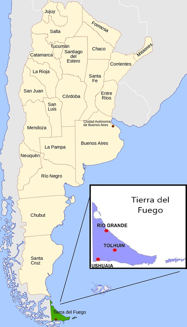 Argentina is the country with the highest rate of hemolytic uremic syndrome (HUS) worldwide.1 HUS represents the first cause of acute renal failure in pediatrics, determines the need for renal transplant in 20% of children and adolescents, and is the second cause of chronic renal failure in Argentina.2 This disease mainly affects children under 5 years of age3 who ingest food or drinking water contaminated with Shiga toxin-producing Escherichia coli (STEC).4‒6 Cattle are a natural reservoir of STEC O157 and STEC non-O157, and are asymptomatic carriers.7 Foods mostly associated with this foodborne disease (FBD) are ground beef, unwashed fruits and vegetables, milk products and unpasteurized derivatives.8,9 Ground meat represents a great risk since the surface contamination of STEC is distributed throughout the mass of the product.10,11 contamination occurs at a low infective dose (<100 CFU/g).12,13 Regarding the prevalence in Argentina, several serotypes have been found, STEC O157:H7 and a group of serotypes that do not belong to that serogroup, STEC non-O157.14,15 Cases distribution are not the same throughout the Argentinean territory,16 southern provinces, mainly Tierra del Fuego (TDF), have the highest incidence of cases.17 TDF has a sub polar oceanic climate and has cold temperatures throughout the year, with an average annual temperature of 5-7°C and low annual temperature variations, ranging from -0.3°C in July to 9.4°C in January. The main population of TDF province live in the big island, which has 3 well-differentiated cities, Tolhuin and Ushuaia cities, at the north and south of the Andes Mountains, and Rio Grande city at the north end of the island, with geographical features of patagonian plateau, wide plains and a local population less influenced by international tourism (Figure 1). The island of TDF has two slaughter houses, used in the slaughter of local bovine and sheep production. Meat imported from the continent only allows whole cuts vacuum packed, boneless, which are not used to grind. Exposure´s degree of the population to STEC is particularly unknown in ground meat. The aim of this work is to evaluate ground meat contamination level with O157 and non-O157 STEC in butcher shops in TDF.