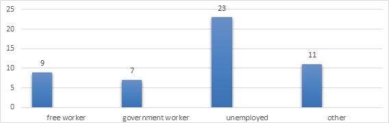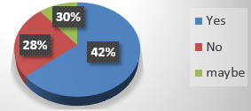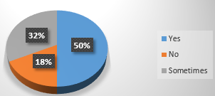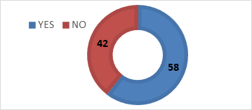 66% of study participants were in the age group 21–40 years; 20% were above 40 years; and 14% were younger than 20 years. 54% (27) of participants were undergraduates, 10% (5) were postgraduates, 12% (6) were in secondary schools, and 24% (12) were illiterate. The current study revealed that 90% of the responders were aware of the disease (Figure 1).Study documented that 58 % of respondent’s have had past medical history of typhoid fever (Figure 2). Dispersion of the population according to occupational type was 46 % (Figure 3).