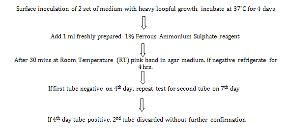 1. Ferrous ammonium sulfate - 0.1gm was placed in sterile screw-capped test tubes.