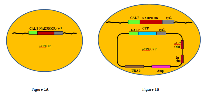 The role of P450s in drug metabolism has made the P450 enzyme system an important tool in drug development process. The base yeast strain is genetically engineered to express the yeast sequence biased human cytochrome P450 reductase under the galactose inducible promoter from the single integrated copy in the yeast genome. The yeast sequence biased catalytic partner of specific human human cytochrome P450s are cloned individually on to episomal plasmids (pYRE CYP) and transformed into this base strain to express the catalytically active human cytochrome P450s (Figure 1B).