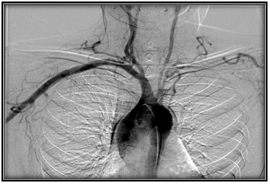 Transthoracic echocardiogram was performed in which trivalva aortic valve was observed with limited coaptation of the cusps that produces severe regurgitation, vena contracta of 6 mm, EROA of 0.5 cm2, aortic root of 36 mm, ascending aorta 35 mm, LVED 51mm, LVEF 59%. (Figure 2 & Figure 3) Severe aortic regurgitation was diagnosed, with Takayasu arteritis as probable etiology. Thoracic angiotomography and angiography were performed, showing areas of stenosis in the left carotid and the left subclavian artery. (Figure 4–7) The final diagnosis was severe aortic insufficiency secondary to dilation of the aortic root due to Takayasu's arteritis by Ishikawa criteria. Treatment with aortic valve replacement with mechanical prosthesis was decided.