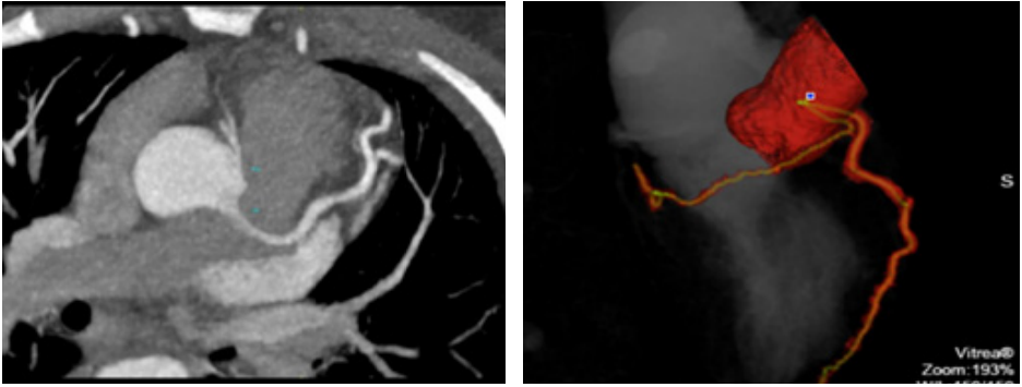 The diagnosis of ACAOS is usually incidental as most patients are asymptomatic. The symptomatic patients present to the emergency usually with exertional syncope, angina, or palpitations.15 Imaging through a coronary computed tomography angiography (CCTA) is very helpful and effective in diagnosing ACAOS and excluding other coronary anomalies with high accuracy,16 as well as being an accurate technique for distinguishing patients at high risk for adverse events.17 In imaging studies yit was demonstrated that the increased risk for MACEs was dependent on specific CT-derived anatomical criteria.17