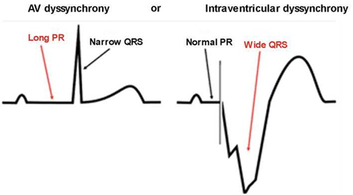 Cardiac dyssynchrony is a difference in the timing of electrical and mechanical activation of the heart, which negatively affects cardiac efficiency.1 In this context, loss of AV synchrony (AVS) is suspected when an excessively prolonged PRi is observed at the surface electrocardiogram (ECG) (first-degree AVB), associated with symptoms due to the uncoupling of physiological coordination between atrial contraction and ventricular filling and systole. Mechanically, there is an early and incomplete closure of the mitral valve, frequently associated with the development of mitral regurgitation (MR).