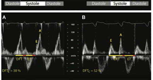 Diastolic dysfunction DFT <40% of the cardiac cycle |