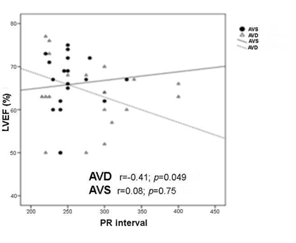 Figure 4 Association between PRi increase and left ventricle ejection fraction (LVEF) reduction. A significant worsening of systolic function is demonstrated in the AVD group with longer PRis. AVD, AV dyssynchrony; AVS, AV synchrony.