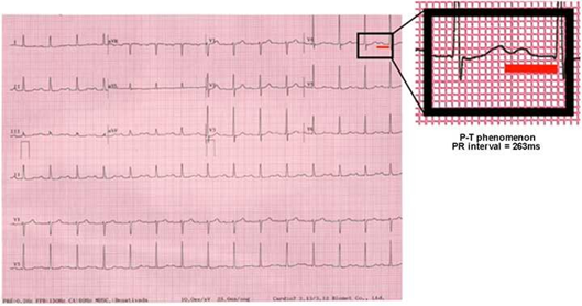 Figure 6 A significant risk of AVD is verified when the 263ms threshold is exceeded and the “P over T” phenomenon is observed; the occurrence of long PR syndrome may be suggested..