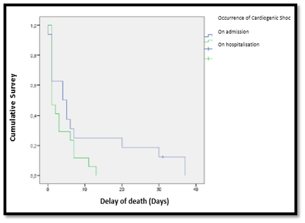 Conclusion: Despite significant advances in the treatment of myocardial infarction, the in-hospital mortality of patients in CS complicating MI remains high. Renal failure, late onset of shock, hyperglycemia and the anterior territory of MI were the major predictive of hospital mortality. A multidisciplinary approach including medical actors and pre-hospital centers specialized in the treatment of this condition is actually necessary.