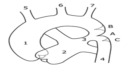 Coarctation of the aorta (CoA) is a congenital heart disease, it occur rarely during the life after trauma ,in cases of advance form of atherosclerosis of aorta and in Takayasu aortitis. CoA is defined as a constricted segment of thoracic aorta at the insertion of ductus arteriosus or a long segment of the hypoplasia of aorta..Sometimes coarctation may be in low segments of thoracic aorta and rarely on the abdominal aorta. It may occur with other form of valvular disease like bicuspid aortic valve, different levels of aortic stenosis or mitral valvular stenosis. In the past CoA has been described as preductal, ductal and postductal type (more common in adults) depending on whether the coarctation segment is proximal or distal to the ductus arteriosus, but now all are juxtaductal (the hemodynamic changes between 3 types are not significant) [1,2] (Figure 1).