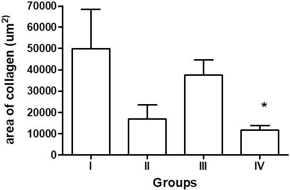 bCollagen area determined in the digitalized image of histological slices of polarized picrosirius stained liver *p<0.05- IV< III; Kruskall Wallis – Dunn’s test