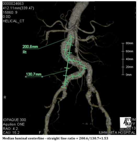 Citation: Kitakata H, Okabe T, Kurita Y, et al. Effective use of computed tomography to distinguish an insurmountable tortuosity of the common iliac artery during the trans-femoral approach. J Cardiol Curr Res. 2014;1(6):155‒157. DOI: 10.15406/jccr.2014.01.00031