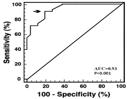 Results: Aortic stiffness index was significantly higher in patients with CAD (19.5 ± 4.9vs 5.6 ± 2.1; P<0.0001), and still elevated even after successful PCI (11.5 ± 2.7; P<0.002). METs was significantly correlated with Aortic beta index (r = 0.64, P< 0.0001), LAVI (r= 0.49, P<0.001) and E/E′ (r =0.53, P <0.001). ASI of <15 and < 16.5 were the best cut-off values for prediction of improved exercise tolerance and LV filling pressure after PCI. The AUROC was calculated as 0.93 and 0.94 respectively (P<0.001).