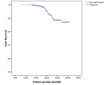 Methods: Three hundred and sixty-five patients undergoing Figulla Flex II ASD occluder insertion for ASD repair at ShahidRajaee Cardiovascular Medical and Research Center in Tehran reviewed retrospectively. The patients were followed for a mean time of 31.7months (ranged 12 to 51months) to assess the long-term outcome and the patients' complication-free survival.
