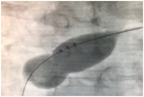 The Amplatzer Septal Occluder (ASO) is now one of the most widely used devices for trans-catheter closure of ASD. Although the ASO resolved some potential limitations of previous methods such as the non-negligible rate of residual shunt and frame fracture, it may still lead to severe cardiac adverse events in about 0.2% of patients mainly due to oversizing the device due to the size of the defect and aortic rim deficiency.9 ASD sizing is usually based on the TEE that will evaluate the size and rims. Although before closure in the catheterization lab, the uses of the sizing balloon will help and, based on the waste will measure the ASD size and estimate the appropriate device size (Figures 2). The initial study revealed a failure rate of 4.3% with significant and total adverse effects of 1.6% and 7.2%, respectively.10 By developing the third generation of occluders like the Figulla Flex II ASD occluder, the risk for cardiac erosion has been significantly reduced. Some large studies demonstrated high efficacy with low complication rate (<1%)when Figulla Flex II ASD occluder is used.10 However, in some other studies, comparable efficacy and safety were shown compared to ASO.11,12 Because of the contradictory results regarding the consequences of the use of Figulla Flex II ASD occluder as a new generation of ASD repair technique, we evaluated the long-term efficacy of using this device in a tertiary referral heart center to find a more unobstructed view of the values about this new device.