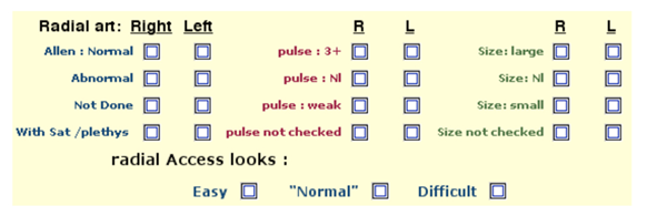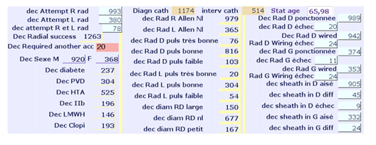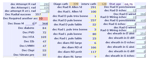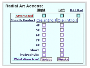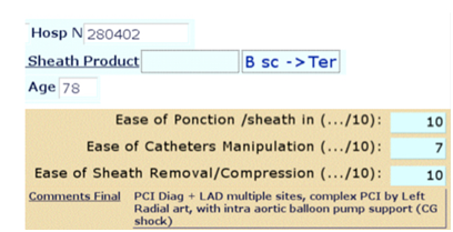 Figure 2 In a few clicks, specific data are captured : art.accsee, sheath size, hydrophilic or not material, short or not and wrist size ; 8 datamed are ‘check-box like’ allowing direct statistics ; each datamed is unique and ‘universal’.