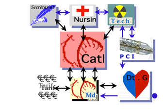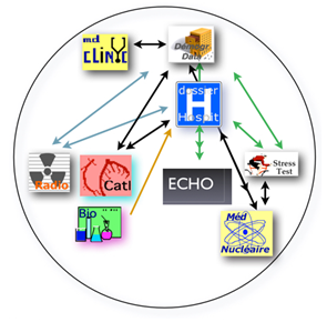 From the aforementioned elements described, it’s easy to understand that the institutional EMR will easily be build thanks to the databases developed in each of the departments: important datamed for the general management of the patient’s health will be shared on line and as soon as they are generated in each medical field. Information only useful for a specific medical department (let’s say for example the datamed pointing to the size or to the special catheter curve used for performing an angiography) will not be visible within the hospital EMR (no utility) but will be retrieved in the department where the datamed belongs to (cath-lab database, procedure technical report and counting report of the used material).