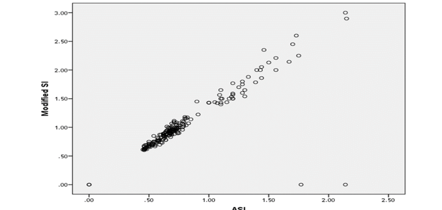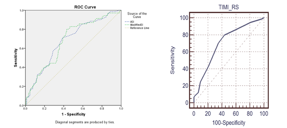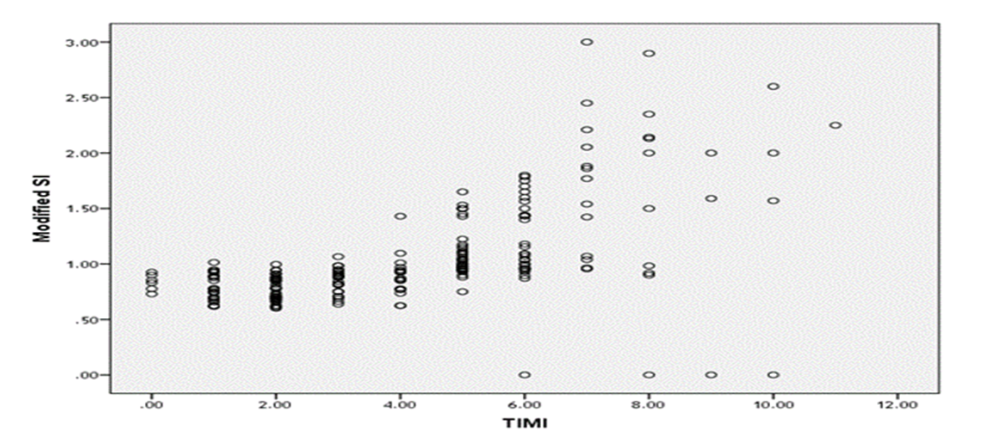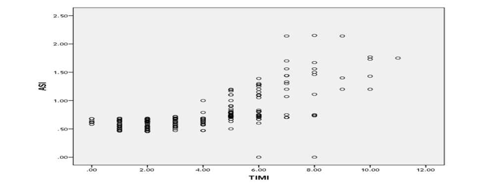 Our study demonstrated significant positive correlation between ASI and modified SI and TIMIrs and also between TIMI and age modified SI but significant negative correlation between EF ASI, TIMI and Modified SI (Table 4, Figure 2-4).