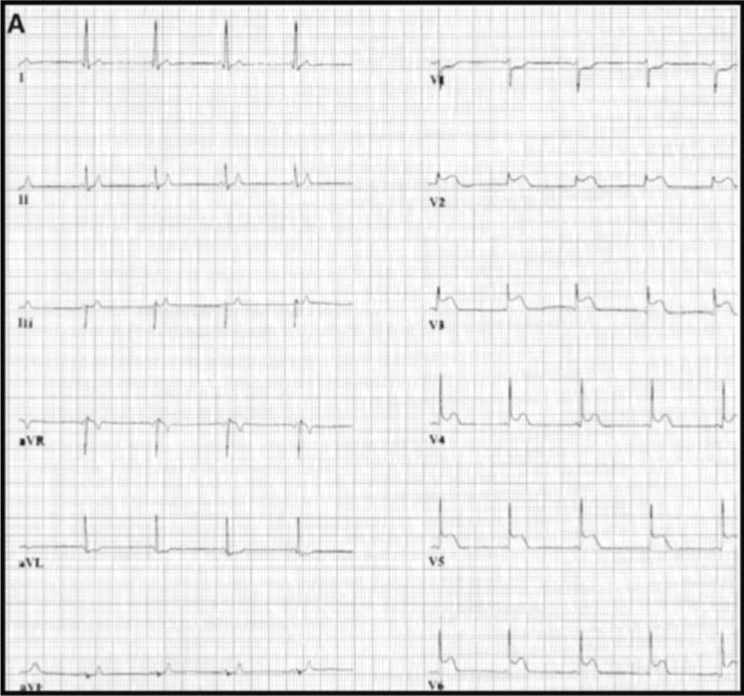 Perhaps the most important aspect of this pattern or syndrome is the great capacity it has to develop in less than 10 days (after identification by electrocardiogram) a massive myocardial infarction in the anterior wall of the ventricle (Figure 8). The electrocardiographic pattern of "short PR interval alongside a short QT interval” was described by Breijo et al. in 2008.1,2 It ischaracterized by the presence in the electrocardiogram of a PR interval of less than 0.120 seconds alongside a QT interval of less than 0.400 seconds (Ie, a reduction in the duration of cardiac electric systole1 and that over 80% cases, are accompanied by syncopal events, nocturnal tachycardias and, sometimes, ventricular fibrillation and, even, sudden death.