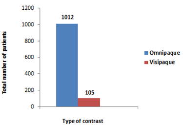 Figure 3 This figure showed that Types of contrast used in these patients, Omnipaque in 1012 and Visipaque in 105 patients.