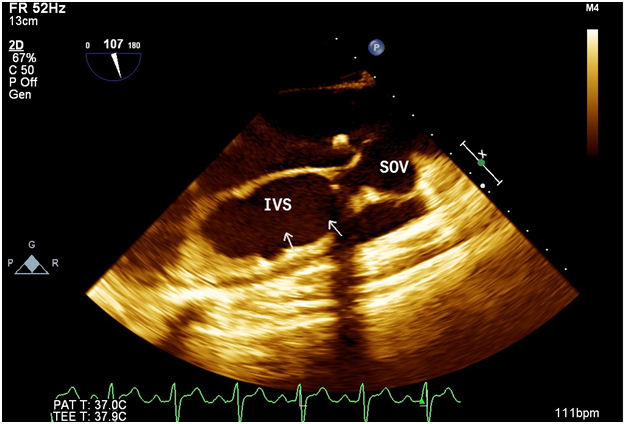 Keywords: Echocardiography; Sinus of valsalva aneurysm; Dissection into IVS
