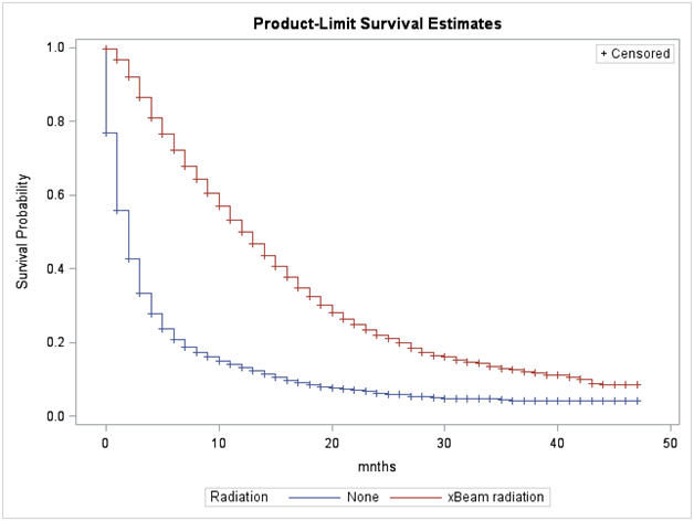 Figure 5 Adjusted Survival Curves for Glioblastoma Cases by Radiation Status from the SEER Data, 2010-2013.