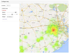 Using our unique data within Google’s Fusion Tables, we were able to generate both a feature map as well as a heat map (Figure 2&3). Qualitative analysis of the heat maps generated above revealed that a significant proportion of patients lived within a 15-mile radius of our center.