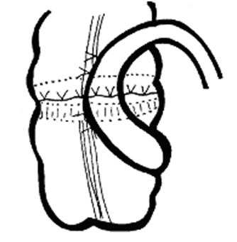 Figure 4 Stage bauginoplasty: the terminal ileum is sutured to the anterior wall of the ascending intestine.