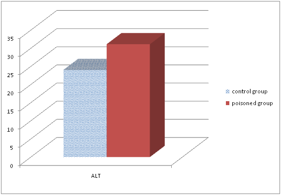 Methods: 40 chicks were randomly were divided to two treatments and 20 replications for each treatment. Treatments included: control group, and poisoned group. And at the end of the period of investigation, enzymes that the liver function indicators (AST, ALT, ALP) were determined and examined.