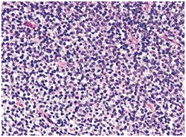 Ewing’s sarcoma is a high-grade osteolytic malignant neoplasm, described by James Ewing in 1921.4 It is the third most primary malignant bone tumor, after multiple myeloma and osteosarcoma. It forms from a certain kind of cell in bone or soft tissue and may be found in the bones of the legs, arms, feet, hands, chest, pelvis, and spine as shown in Figure 2.5 It is classified as a group of small round blue tumor cells as shown in Figure 3, which includes neuroblastoma, alveolar rhabdomyosarcoma and lymphoblastic lymphoma.6 The Ewing’s sarcoma family of tumors (ESFT) includes classic Ewing sarcoma (ES), Askin tumor, and peripheral primitive neuroectodermal tumor (PNET).