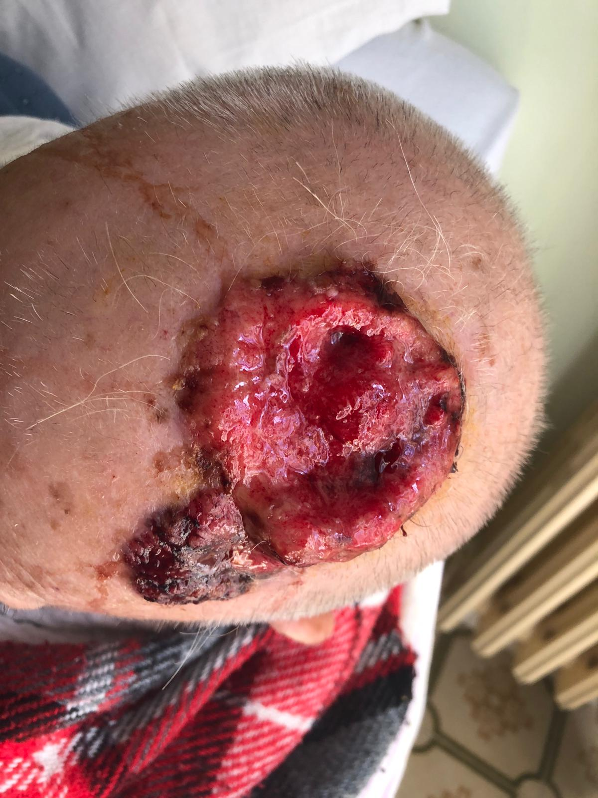 Figure 3 A case of giant NMSC of the scalp in a 93 years old patient measuring 10cmx12cm before 60 Gy electron beam radiotherapy.