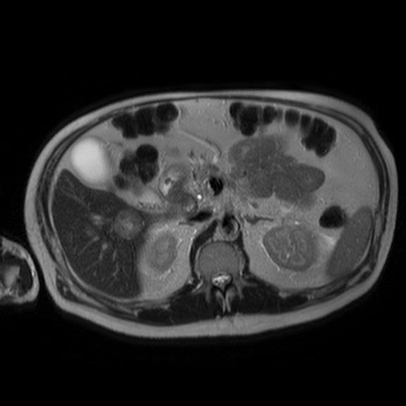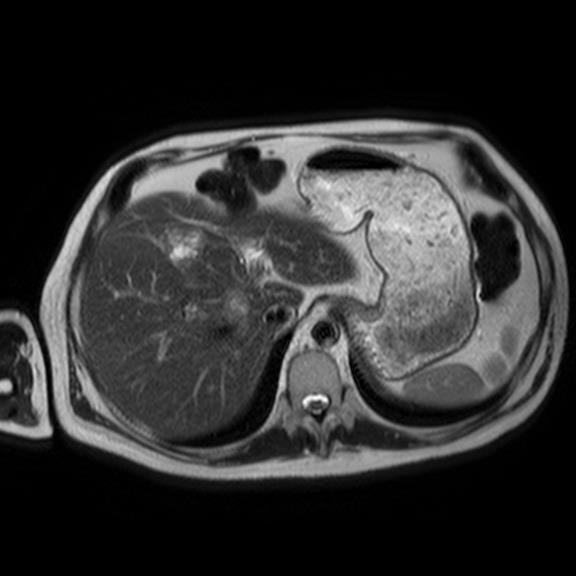 Nearly 11 months after his initial presentation, the patient presented again to his doctor for another follow up. At that point it was clear that the patient was declining rapidly. The rash had spread to his perineum and groin. He described the rash as excruciatingly painful to the point where the patient needed a wheelchair to ambulate. Upon further questioning, the patient reported a thirty pound weight loss over the prior 4 months. He still endorsed the diarrhea. A closer examination of his mouth and oral mucosa revealed dry, cracked and inflamed lips. The patient stated he had noticed this for about a year but did not make much of it. Lab work showed a new normocytic anemia with Hemoglobin of 11.4, an albumin of 2.8, and ESR of 63, and a blood sugar of 165. A malignancy work up was started at this point. CT of his abdomen revealed a pancreatic tail mass as well as three focal liver lesions which were confirmed on MRI (Figures 2-4).