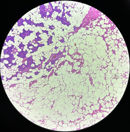 Histopathological examination of the resected specimen is the gold standard for its definitive diagnosis. Grossly, the tumor is well-circumscribed yellow to tan in appearance. The cut section is homogenous and fatty. On histomorphology, although similar to mature adipose tissue, a fibrous capsule aids in distinguishing a lipoma from benign aggregation of fat. Intraparotid lipoma shows lobules of parotid parenchyma with interspersed equally spaced isomorphic adipocytes or adipose tissue surrounded by a compressed rim of salivary gland tissue. Very rarely, focal sebaceous differentiation might be encountered. Important differentials include lipomatous metaplasia in pleomorphic adenoma, myoepithelioma with co-existing lipomatosis, oncocytic lipoadenoma, non-oncocytic sialolipoma, ordinary lipoma, pseudolipoma, lobular lipomatous atrophy and primary or metastatic parotid gland masses.5,6 Ancillary techniques like immunohistochemistry and cytogenetics/molecular studies have potentially no role in the diagnosis of this rare neoplasm.