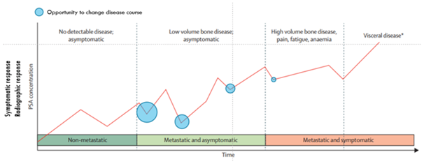 Figure 1 Natural history of a patient with prostate cancer is plotted against time.7
