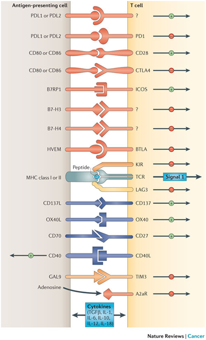 Figure 1 Multiple co-stimulatory and inhibitory interactions regulating T cells. Drew Pardoll. The blockade of immune checkpoints in cancer immunotherapy.26