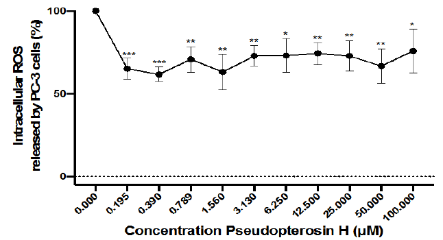Pseudopterosin H downregulated intracellular ROS concentration in PC-3 cells