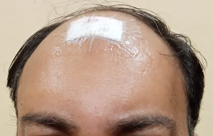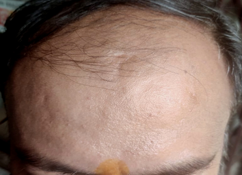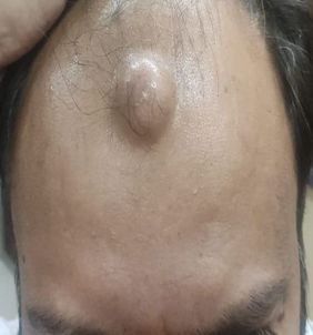 A 47-year-old non-smoker, non-alcoholic, non-vegetarian male presented with slowly growing painless swelling on the scalp over the frontoparietal junction of the skull for the last 8 years (Figure 1). The swelling was initially of peanut size but gradually attended to the size of a walnut. The margins of the lump were well-defined with sharp edges. The skin over the swelling was normal and the tumor was firm and mobile under the skin and not fixed to the base too. There was no punctum found over the lump. There was no history of penetrating or blunt trauma and any previous operation. The patient had no complaints except cosmetic concerns for which he needed an excision. A provisional diagnosis of an epidermal cyst was made.