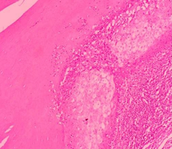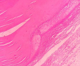 Figure 7 Microscopic examination revealed trichilemmal cyst lined by squamous epithelium with homogenous pink keratin (H&E Stain).