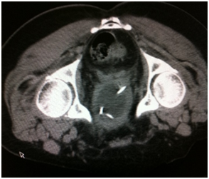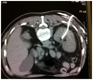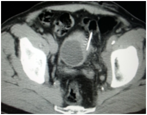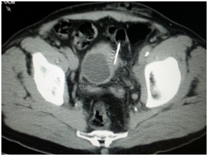 Endoscopy is the second diagnostic tool for this disease and during this procedure usually biopsies are taken -I did once percutaneous CT guided bladder biopsy (Figure 7) to assess the depth of tumor invasion of the bladder layers after insistence of the treating physician even though I think it's not necessary and cost ineffective.