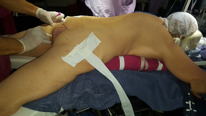 Figure 2 Posición del paciente en navaja se utiliza esparadrapos para mejorar la exposición de la zona perianal.