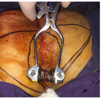 For better exposure of the affected area, tape is used to separate both buttocks. A rectal examination was performed under anesthesia and the area was marked with a demographic pencil, covering the resection area, maintaining a distance from the anal margin of approximately 3 mm at least from the dentate line to reduce the probability of anal stenosis. Regarding the external edge of the area to be resected, it is a matter of including the entire lesion without prejudice to which, when there is a punctate or small lesion (Figure 3, 4), to avoid resection of healthy skin that makes it difficult to cover the skin defect, one can resort. to complementary techniques such as cryoablation. In this way, relying on techniques that are not mutually exclusive, but on the contrary complementary, we avoid large resections that make closure more complex and difficult.