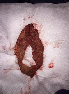 Figure 7 Pieza para estudio anatomopatológico. Interesa presencia de malignidad y márgenes de resección.