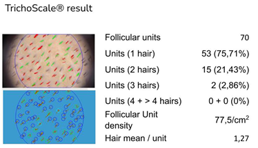 The phototrichogram, introduced by Bouhanna in 1983,15,16 objectively evaluates the scalp using a digital camera (Figure 9). Currently, tricholab® and trichoscale® evaluations are used.