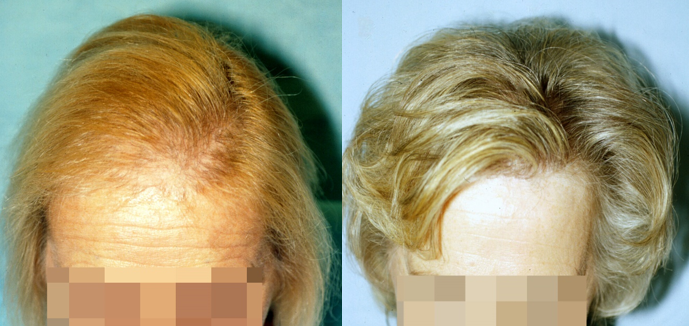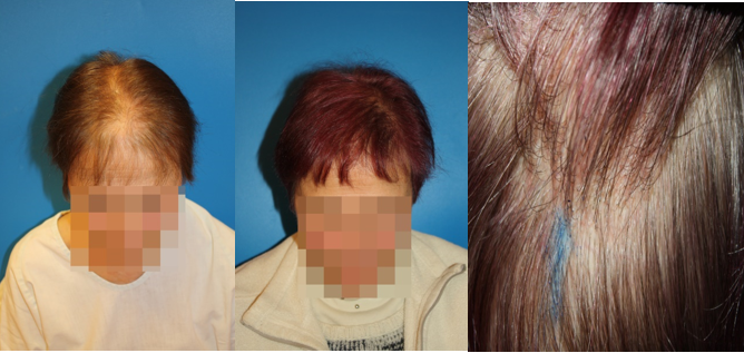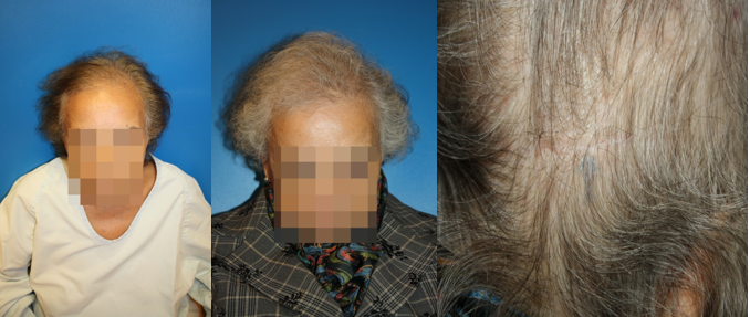 For the author, the oldest female patient treated was 83 years old (Figure 16 a, b, c). A medical hair treatment is always combined with the hair transplant indication3
