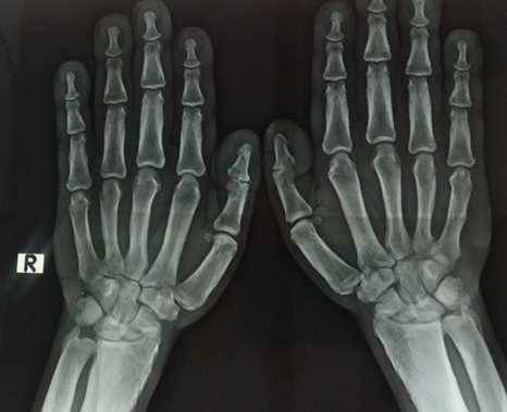 Initially, acromegaly was considered a working diagnosis. However, the early onset during puberty, association with hyperhidrosis, seborrhea, cutis vertices gyrata, positive family history, and the absence of coarse facial features such as a large nose and chin made acromegaly unsuitable. Given the characteristic clinical and radiological findings, along with the positive family history, a diagnosis of complete pachydermoperiostosis was established. The patient was prescribed etoricoxib 60mg daily, a COX-2 inhibitor, which was proven efficacious in several reports, with a good response, seen in a follow up visit, in two months.