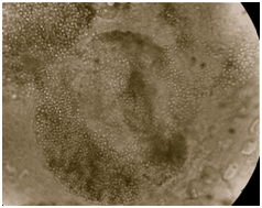 Figure 6 Endothrix pattern of hair invasion due to T. violaceum with appearance of ‘Bag of marbles’ seen in 20% KOH mount. Magnification X400.